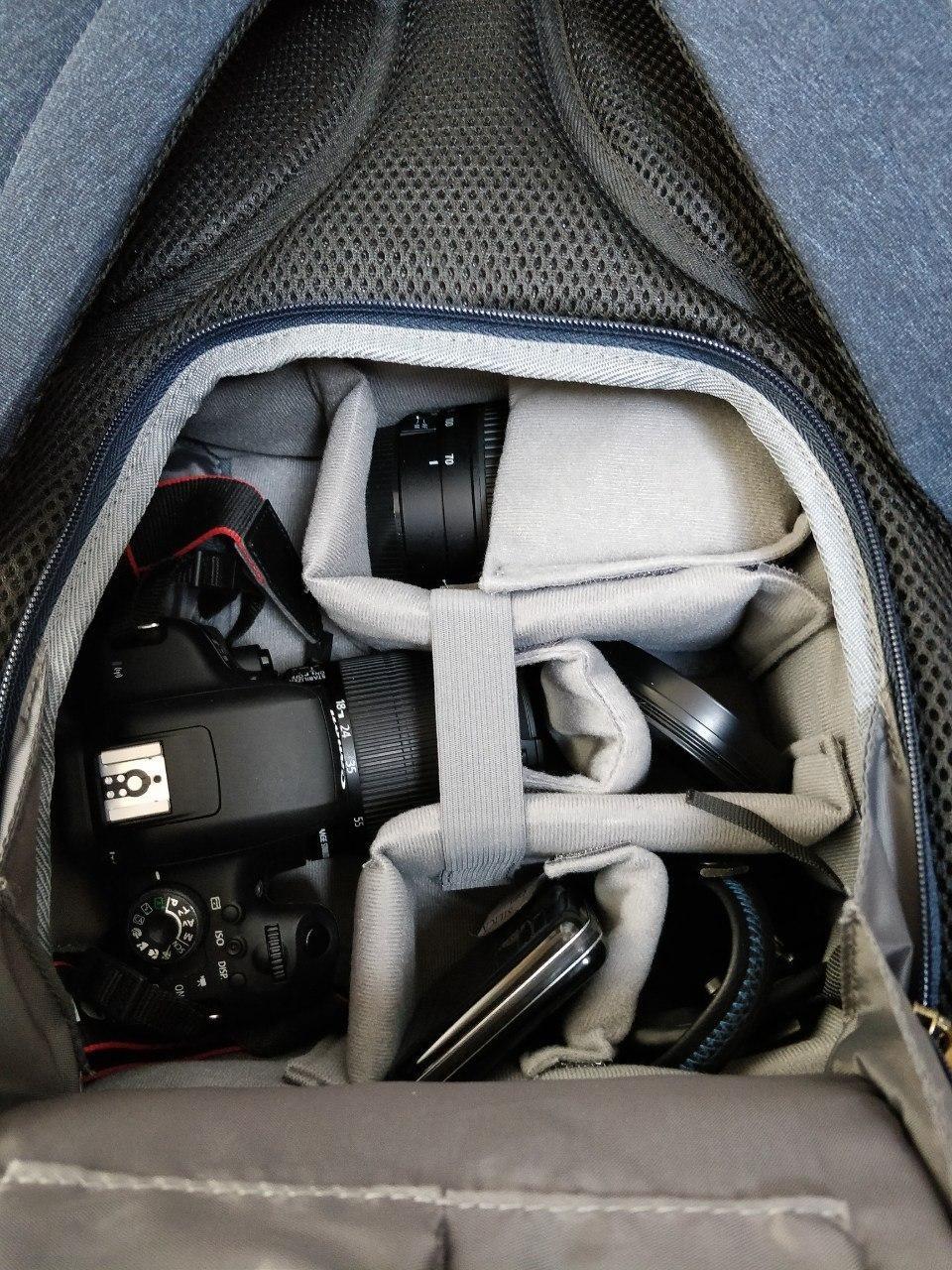 Als fan van fotografie ga ik vaak op reis, mijn behoefte was om een rugzak te vinden voor mijn lichte en praktische fotocamera's. Deze laatste is een ideale tas voor vliegreizen, wandelingen in de stad en op het platteland, die perfect aan mijn behoeften voldoet Ik heb deze tas gekozen vanwege zijn kleine formaat en lichte gewicht. Hiermee kan ik al mijn fotoapparatuur opbergen zonder al te veel ruimte in beslag te nemen, evenals mijn kleine kleding. Het volume wordt geaccepteerd in de vliegtuigcabine. Het is discreet, elegant en geeft niet aan dat het camera's bevat. De bijgevoegde foto's tonen deze kwaliteiten in ontwerp, kleur, deze praktische zakken, het gewicht (licht), wat een goed gewicht is met mijn apparatuurfoto's, smartphone en portemonnee en sommige kleding, maar beide zien er stevig uit met de geansstof. Ik kan bevestigen dat het een heel goed product is.