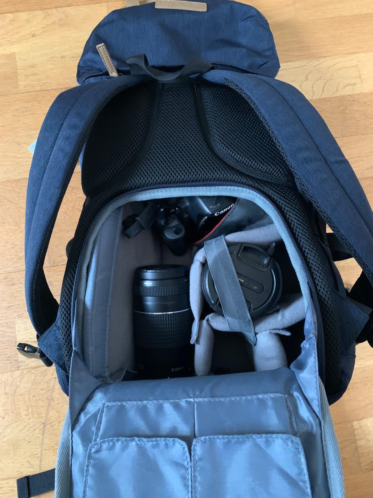 Deze rugzak ontworpen om fotoapparatuur te dragen is zeer goed afgewerkt. Het denim uiterlijk met kunstleren riemen is erg mooi, visueel ziet het eruit als een normale rugzak, die de wens van dieven kan vermijden, in tegenstelling tot een wandeling met een cameratas met dure apparatuur Dankzij het grote vak aan de bovenkant kunt u kleine, snel toegankelijke apparatuur opbergen en dus gescheiden van het fotocompartiment. Kleine bonus: er wordt een regenhoes bij de tas geleverd, die in een vakje op de bovenste flap van de tas kan worden opgeborgen. Aan de rechterkant van de tas zit een open vak en een riempje waar je bijvoorbeeld een klein statief of een waterfles in kunt opbergen. Aan de linkerkant bevindt zich een ritssluiting die snelle toegang tot de inhoud van het centrale vak mogelijk maakt. Deze toegang is zeer praktisch om snel toegang te krijgen tot uw apparatuur. Dit centrale vak is onderverdeeld in compartimenten met verwijderbare schuimelementen, zodat u uw camera en lenzen veilig kunt vasthouden. Toegang tot dit vak is via de achterkant van de tas. Deze tas past bij mij perfect voor nomadisch gebruik op vakantie en voor fotoreportages. Het is comfortabel en heeft een prettige uitstraling. De prijs blijft correct gezien de kwaliteit van de afwerking van het object.