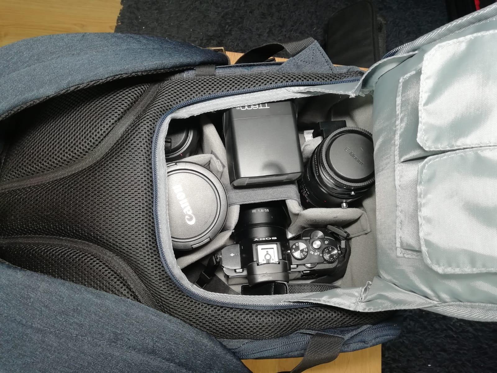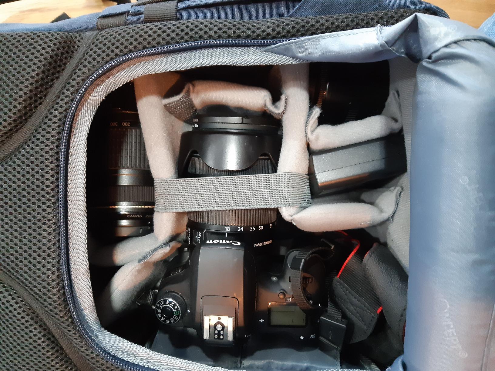 Deze tas is zeer goed ontworpen voor fotografen met veel apparatuur. Het bevat interne compartimenten om lenzen op te bergen, kleine vakken om batterijen, SD-kaarten en accessoires op te bergen. Vanaf de zijkant is het mogelijk om snel bij je toestel te komen, wat het onderweg een stuk makkelijker maakt. Er is ook gedacht aan een slot voor een 13 inch computer, een tablet en een statief, waardoor het een perfecte tas is voor een uitgeruste fotograaf. Het enige punt van waarschuwing is dat deze tas niet geschikt is voor gebruikers van grote full-format spiegelreflexcamera's, omdat deze tas niet echt is ontworpen voor zeer grote lenzen. Hij past perfect bij APS-C spiegelreflexcamera's of hybrides.