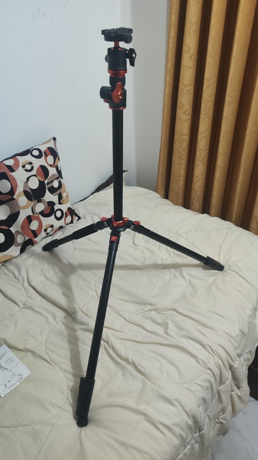 Het statief is in perfecte staat aangekomen. Ik heb het uitgeprobeerd en bijna alle onderdelen werken correct, behalve één: het oranje platform onder de metalen balhoofd, vastgemaakt aan de middenkolom. Dit onderdeel is blokkeert en draait niet, waardoor ik de daar gemonteerde schroef niet kan gebruiken – een functie die ik juist vaak nodig had.