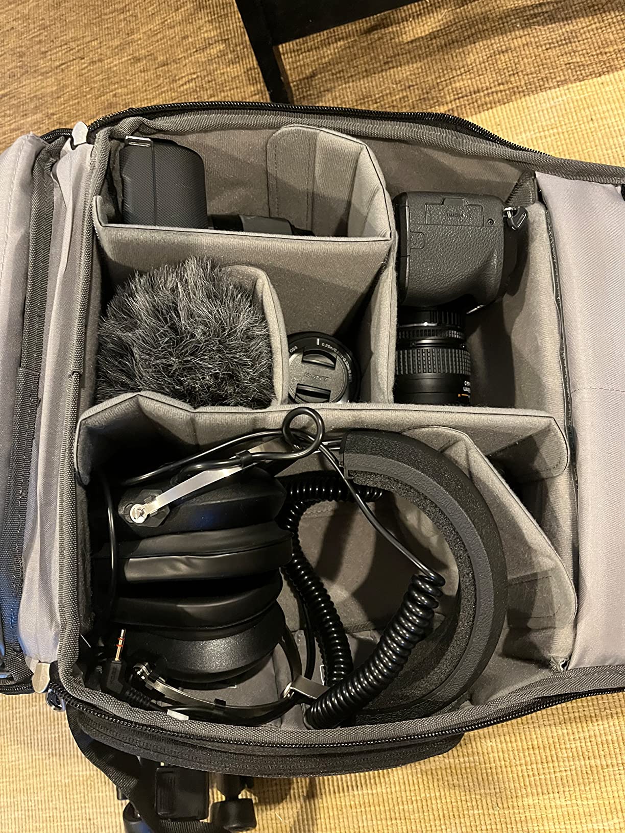 Na veel onderzoek voor mijn eerste camerarugzak, heb ik uiteindelijk deze gekocht en ik gebruik hem nu een paar dagen voor reizen/voor een paar evenementen en hij is geweldig.Ik kan het volgende comfortabel meenemen- Kaarten- Reservebatterij- Lumix G7- Canon 70d- 4 lenzen (waarvan 2 kleine)- Flitslicht- Opladers- Laptop- Statief- En een paar andere dingen en spullenHet ziet er geweldig uit, voelt geweldig aan en het is precies de juiste grootte, doet zijn werk of je nu minimale of veel apparatuur meeneemt. Ik heb ook veel complimenten gehad over de tas! Ik ben echt blij met de aankoop en zou hem zeker aanraden.