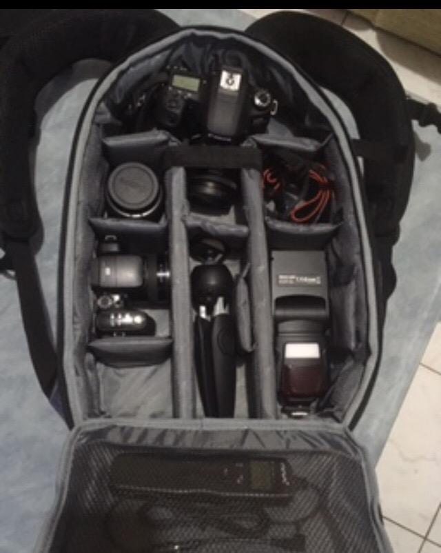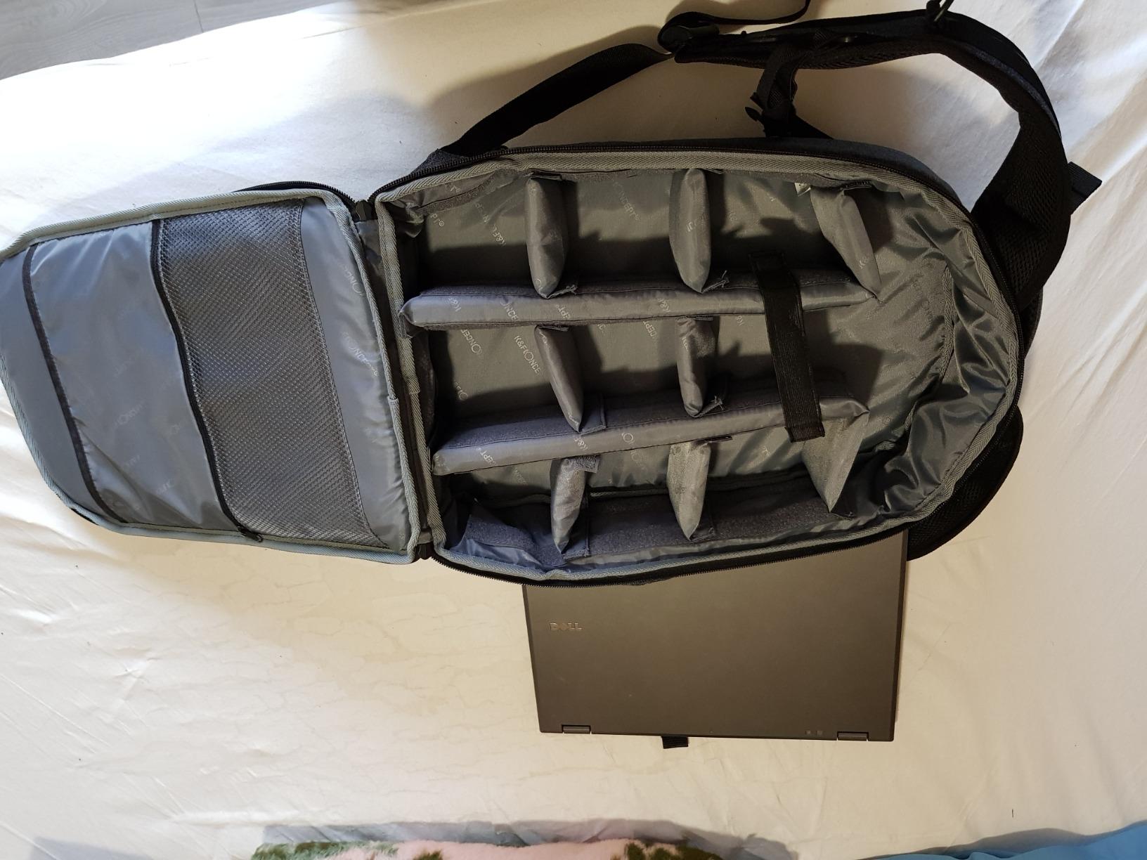 Ik ben super blij met de tas en de kwaliteit. Er is genoeg te doen op het gebied van opslag. Mijn 70D met een 70-200 f2.8 en 2 andere lenzen, 2 flitsers en veel kleine accessoires passen er zonder problemen in. In de andere hoes kan ik zowel mijn opladers als mijn Windows tablet kwijt. Kortom: er is genoeg te doen. Bovendien voorkomt de opening aan de achterkant diefstal van het zeer goede