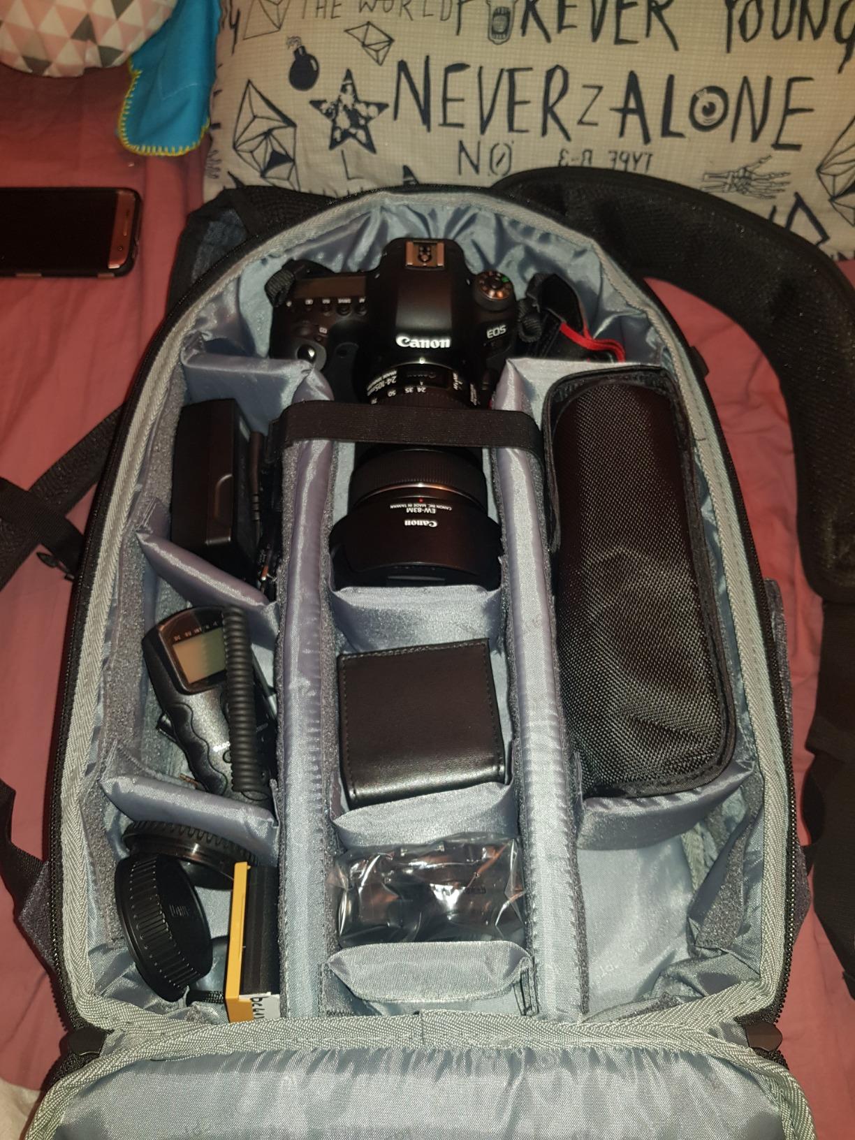 5 sterren in algemene beoordeling, duidelijk comfort, waterdichtheid nog niet getest dus 1 ster, maar dat betekent op geen enkele manier dat dit niet het geval is. Het lijkt solide, maar aangezien ik er momenteel niet mee op pad ga, kan ik er geen commentaar op geven. Verder is het een hele mooie tas, groot genoeg voor alles wat ik leuk vind, praktisch. Oordeel zelf (zie foto's) Uitrusting die ik erin heb kunnen passen: Canon 6D Mark II met 24-105 3.5-5.6 STM-lens Oplader Camerabatterij + 1 batterij 1 cobra YN685C flitser 1 JJC WT draadloze intervalmeter afstandsbediening -8681 flitscontroller YN622C-TX Enkele reservebatterijen voor de flitser en de zonnekap voor het LH30 Movo verstelbare scherm en buiten het K&F Concept TM2534T statief als ik ga wandelen.