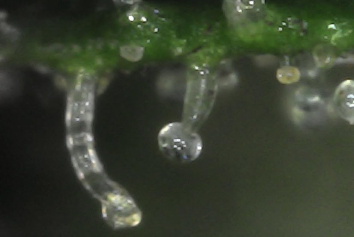 Perfect voor het herkennen van trichomen, een beetje dom of vergt wat oefening vanwege het hanteren, maar als je de microscoo met één hand kunt optillen en tegelijkertijd kunt draaien, is het voldoende. (Je moet de mobiele telefoon in de andere hand houden omdat de kabel van 20 cm de grond van mijn plant niet bereikt).