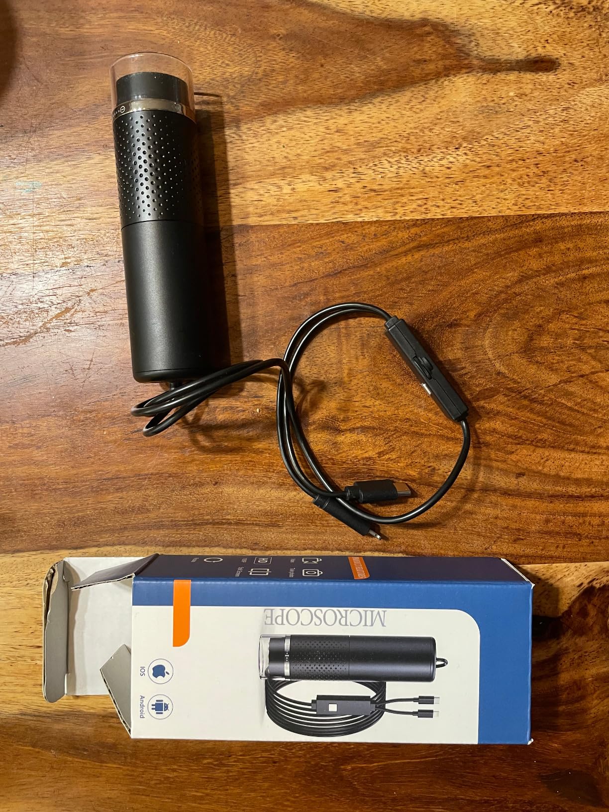 Een beetje teleurgesteld in dit apparaat, omdat het gezichtsveld erg klein is en de kwaliteit van de app niet geweldig. Ook is het moeilijk om de microscoop stabiel te houden en te oriënteren voor een correct beeld. Misschien beter met een standaard?. Ik ben weggegaan en heb in plaats daarvan een handloep besteld. Update: ik heb een aluminium standaard gekocht en heb deze goed gebruikt om onderdelen met waterschade op mijn smartphone te identificeren. De standaard maakte het verschil.
