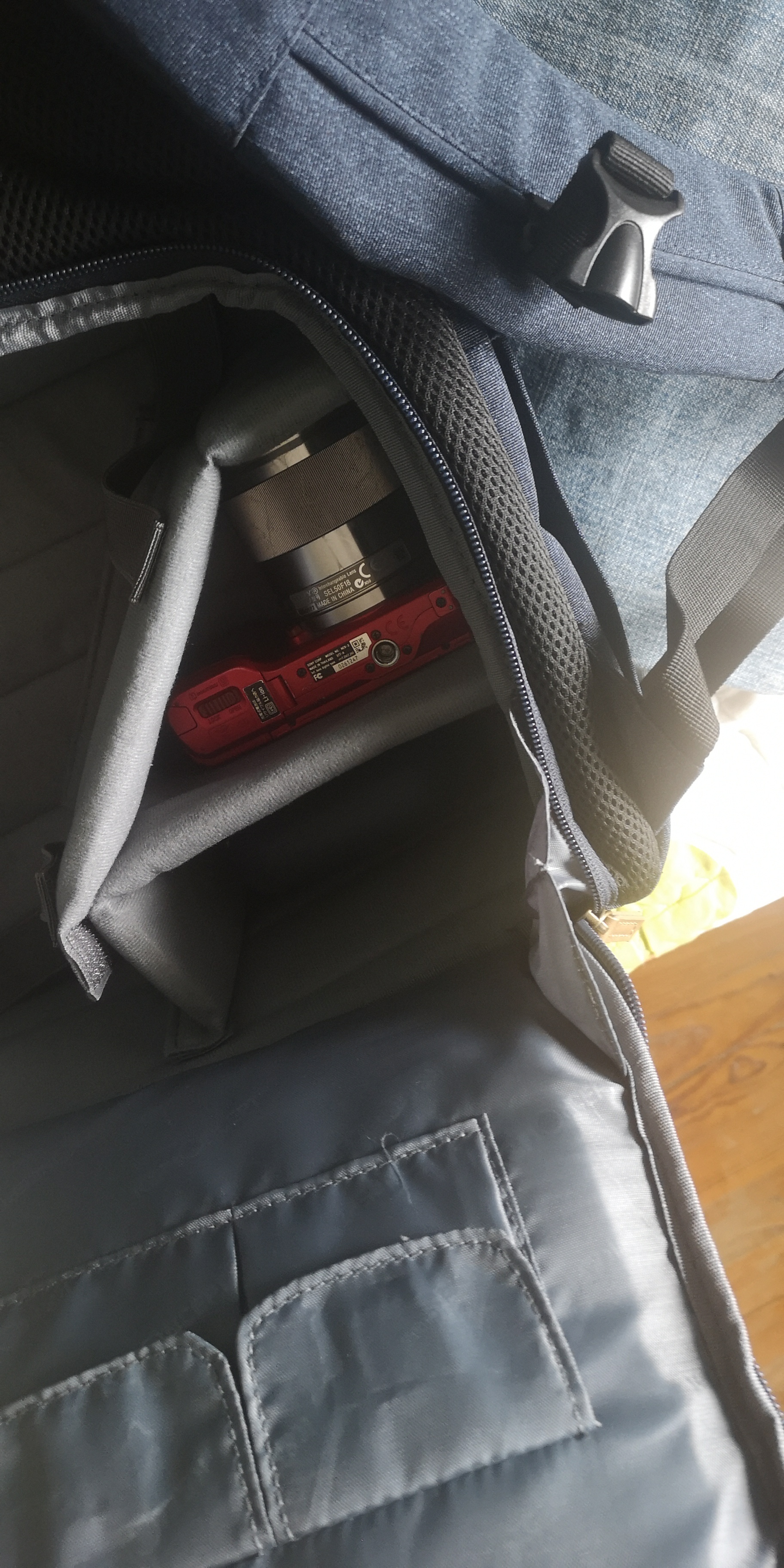 Aan de bovenkant Rugzak met verstelbaar compartiment, echt praktisch voor camera's, apparaten enz. en daarnaast een bovenvak waarin je kleding of andere spullen in Urban-stijl kunt opbergen, ik raad deze tas aan!
