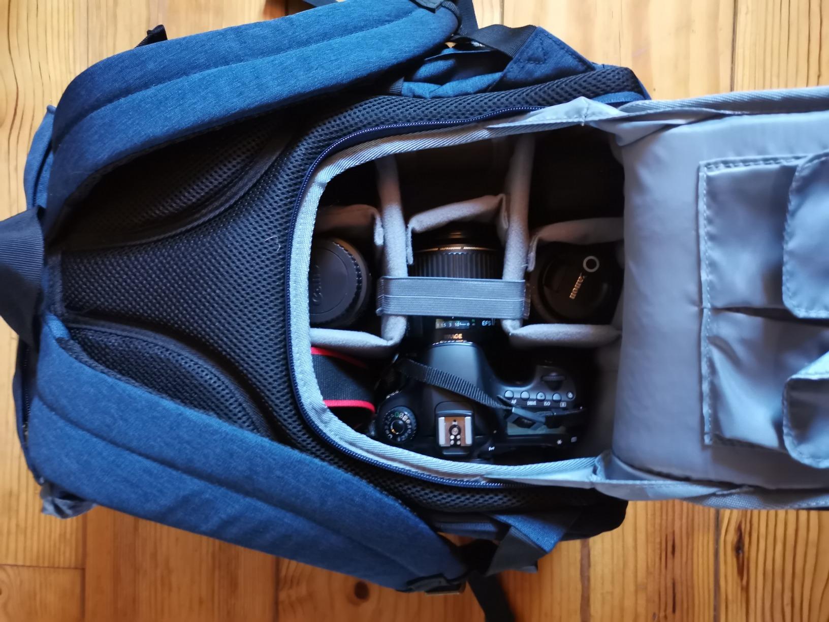 Ik heb twee wandelingen gemaakt met mijn nieuwe tas, hij draagt zeer comfortabel en het anti-zweetsysteem op de rug is een echt pluspunt. Het zakje aan de zijkant vind ik erg praktisch om het hoesje snel mee te nemen. Er is ook voldoende opbergruimte voor verschillende lenzen of go-pro-accessoires. Het aparte vak aan de bovenkant is erg handig voor andere dingen, ik waardeerde het enorm dat er een waterdichte tasbeschermer bij zat.