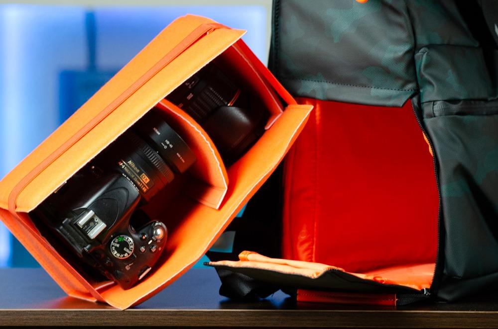 Je komt via een zijrits bij het cameravak. Daar zit een stevige inzet in waarin alles veilig ligt. Zelfs als de rugzak valt, hoef je je geen zorgen te maken.