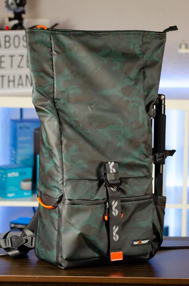 Deze cameratas van “K&F Concept” heeft mijn verwachtingen overtroffen. Normaal houd ik niet van rolltop-rugzakken, maar voor deze heb ik een uitzondering gemaakt. Met een laadvolume van 20 liter is deze rugzak echt een allrounder. Je kunt hem gebruiken als cameratas, maar ook om boodschappen te doen of te wandelen. Er is een rugvak waar een 15,6" laptop of tablet in past. Het onderste vak is uitneembaar en biedt plaats aan een camera, in mijn geval een Sony Alpha 6400. Het vak is modulair en vrij in te delen met twee verdelers. Er wordt ook een regenhoes meegeleverd. De rugzak is IP4-gecertificeerd en dus spatwaterdicht. Hij draagt zeer comfortabel dankzij de goede padding. De rug en schouderbanden zijn zacht, dus langere wandelingen zijn geen probleem. Het kleine voorvak aan de rechterkant heeft RFID-bescherming, wat ik fijn vind tegen datamisbruik. De camouflage-look sprak mij aan, evenals de oranje reflecterende details.