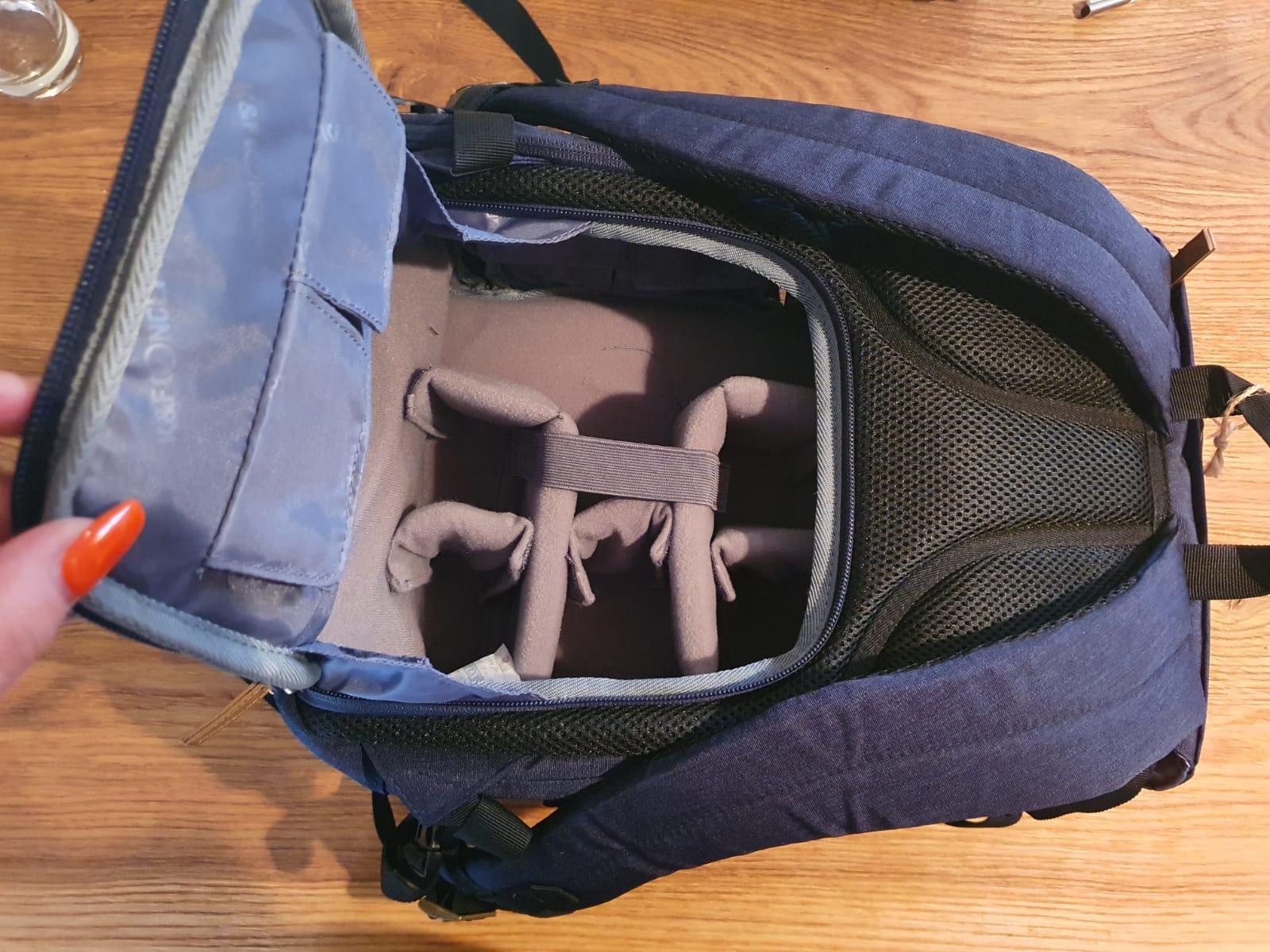 Doordat je het bovenste vak kunt oprollen, is de rugzak nooit te groot en past hij zich goed aan. Ik vind het ook superhandig dat er aan de zijkant een apart vak is voor een drinkfles. Zo hoef je je nooit zorgen te maken dat iets lekt op je camera.