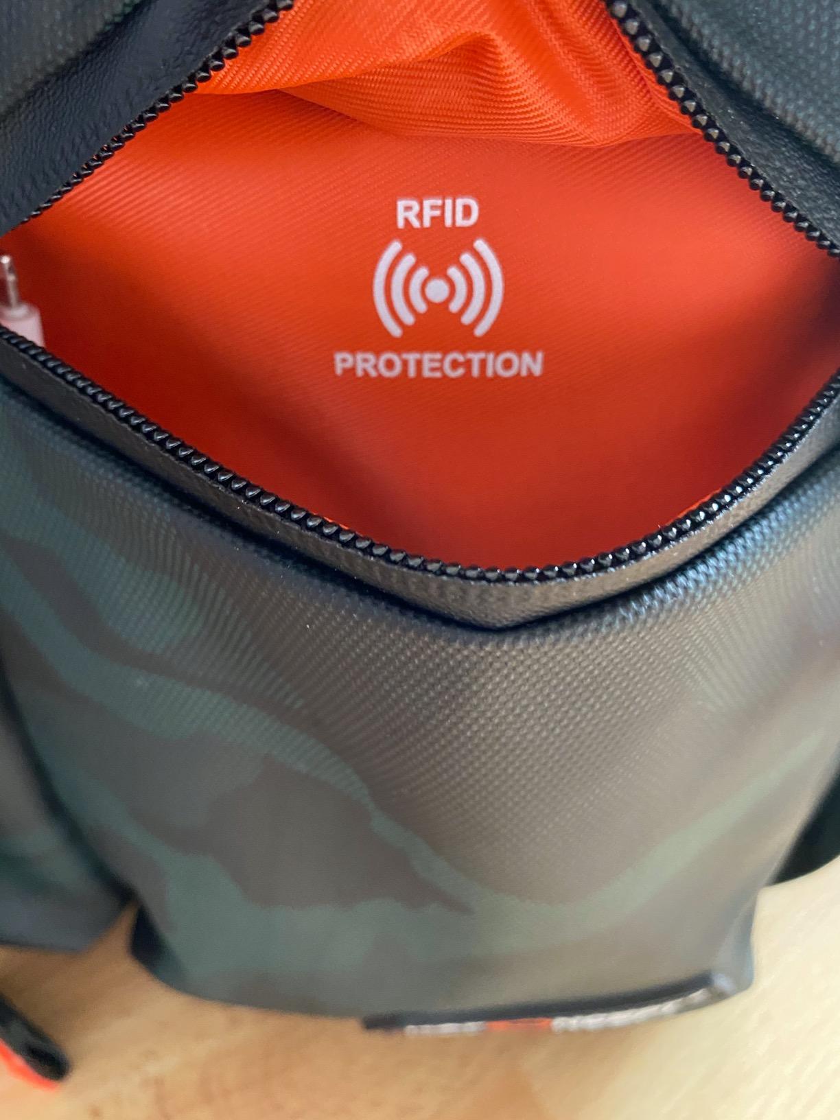 Wat ik ook bijzonder vond: een klein voorvak is RFID-blokkerend – handig voor je bankpasjes. Aan één van de schouderbanden zit een beveiligingsbandje waarmee je de rugzak aan bijvoorbeeld een tafelpoot kunt vastmaken. Slim bedacht!
