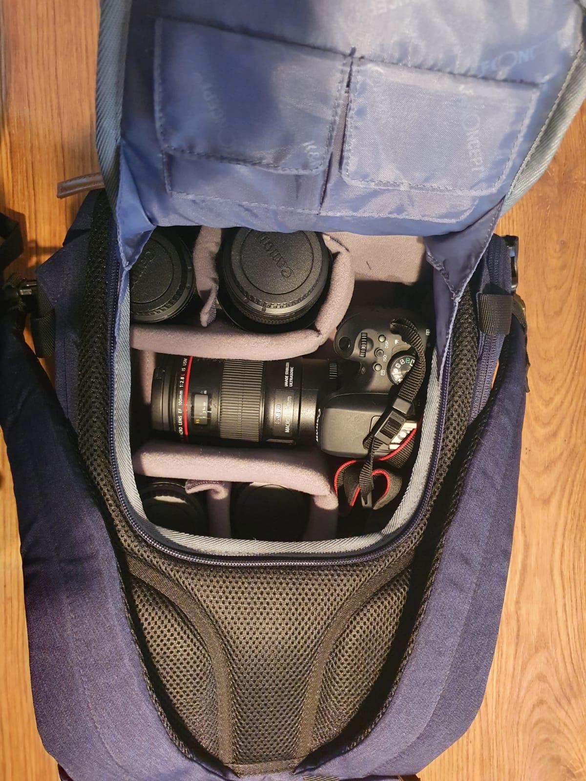Ik zocht een cameratas waarin al mijn apparatuur past (Alpha DSLR + 18-200mm + 16-50mm + 50mm + accu’s + geheugenkaarten + reinigingsset + laders + camerariemen + statief én mijn 15,6" laptop met lader en muis). Natuurlijk neem je niet altijd alles mee, maar het is fijn als alles overzichtelijk is opgeborgen. Het was voor mij ook belangrijk dat je de camera er aan de zijkant uit kunt halen zonder alles open te maken. Zo kwam ik bij deze rugzak terecht. De beschrijving en beoordelingen waren goed en hij was ook nog eens in de aanbieding.