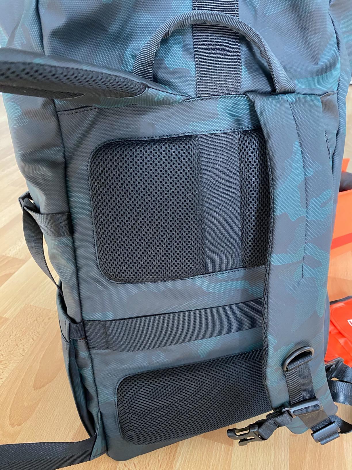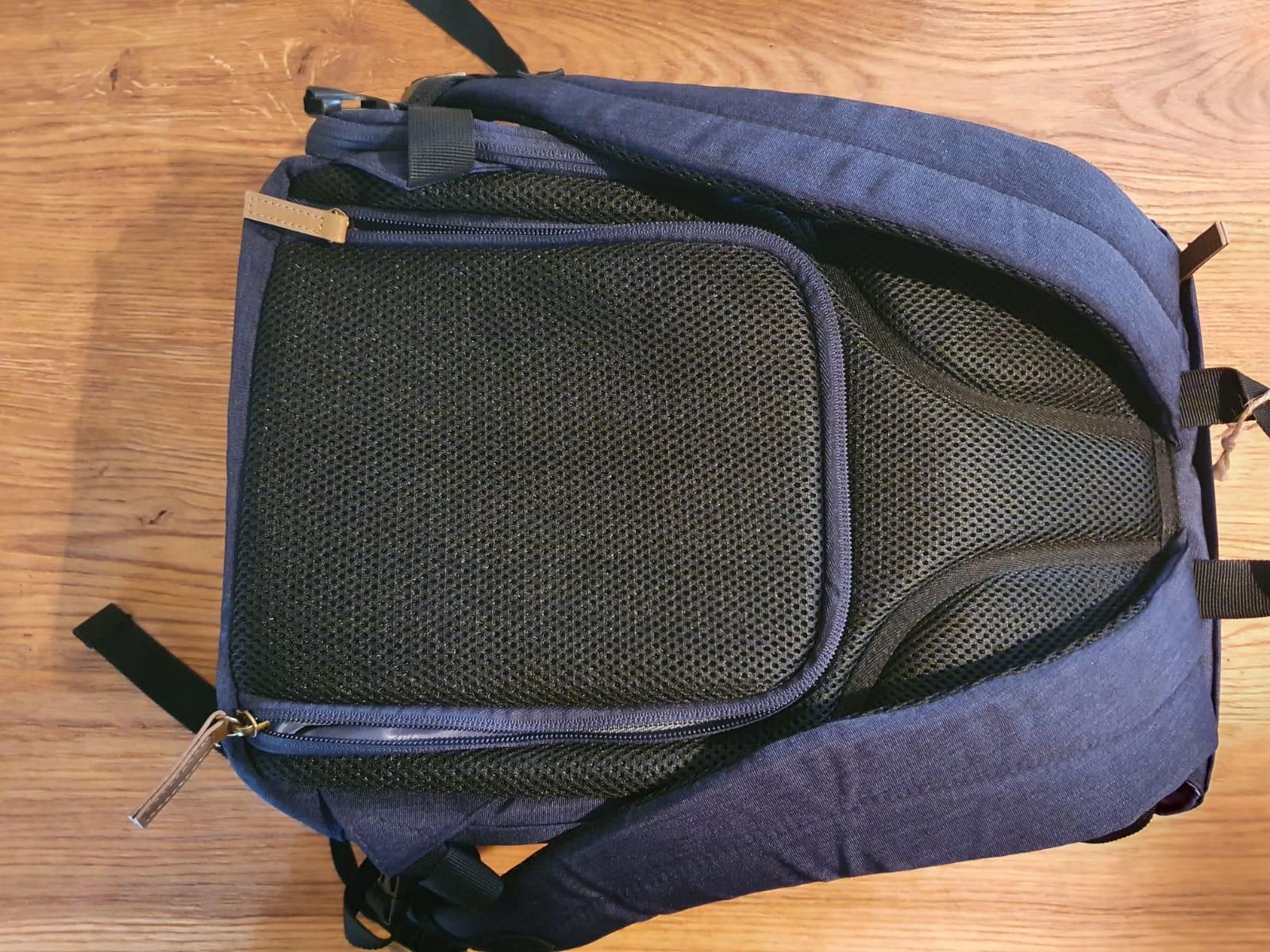 Het uiterlijk van de rugzak bevalt me erg goed – in het echt ziet hij er zelfs nog beter uit. Hij draagt prettig op de rug. Aan de onderkant zit een versteviging zodat hij stevig rechtop blijft staan. Echt handig!