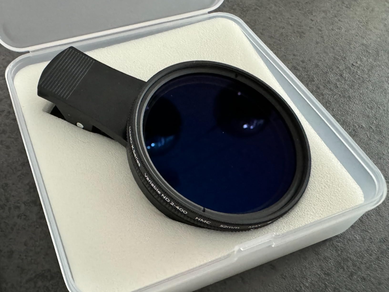 Dit is een leuke toevoeging voor de camera van je telefoon. Je klikt hem gewoon vast en bedekt de lenzen van je camera. Ik heb geen manier om de optische kwaliteit van het glas te testen, maar het ziet er prima uit en de bouwkwaliteit lijkt goed. Als extraatje komt het ND-filter los van de telefoonbeugel en past het op de 52mm-lenzen van mijn Fuji X-T200. Leuke toevoeging aan mijn cameratas en voor als ik kiekjes maak met mijn telefoon. Er is geen informatie bijgevoegd, dus als je niet weet wat een ND-filter doet of hoe je het effectief kunt gebruiken, kun je op internet zoeken. Aanbevolen.