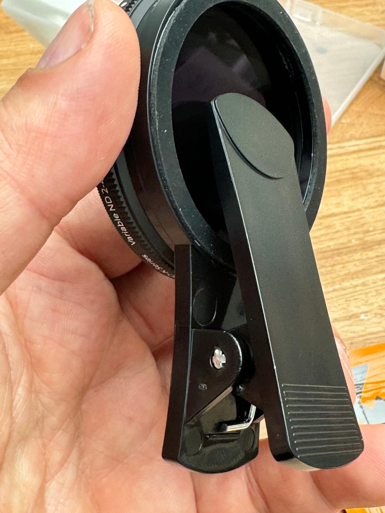 This is a very good quality clip on ND filter.The filter is ND2-400 and you can adjust it by rotating the front ring.The filter clips on iPhone without any issues and it is just the right size to clip snug around the 3 cameras.The filter is made to fit the phone based on a phone without case and if you do have a thick case - it doesn't fit well.I personally have a case that fits snug so it is not that thick , but still the lens filter doesn't clip on very well and I have to take the case off.The price of this filter is €20.99 , which is not bad for what you get.Hopefully my review was Helpful for you.