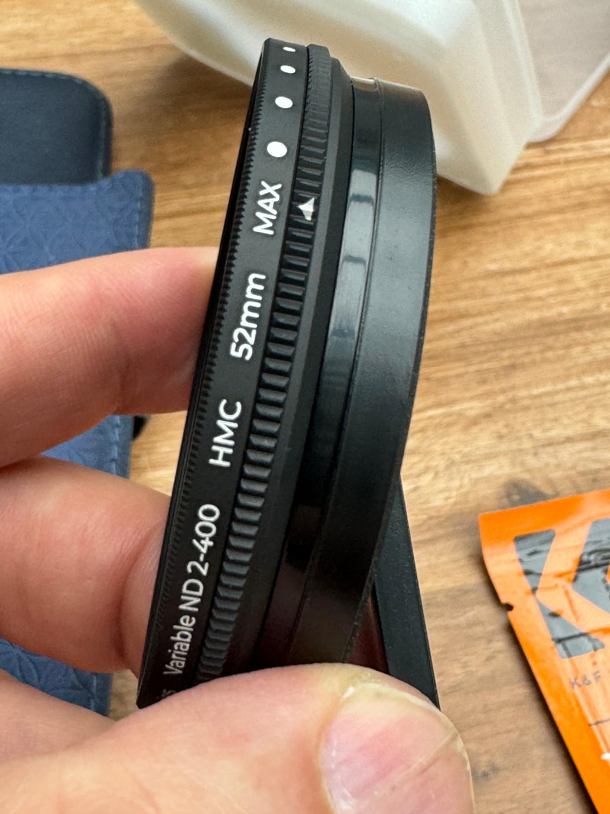 Ik heb dit product als Vine-tester ontvangen. Het geteste product was: K&F Concept Universal Mobile Camera Lens Set, filter voor mobiele camera, 52mm variabele ND2-ND400, alleen voor iPhone. De aankoopprijs was € 23,49 min 10%. Het werd geleverd in een klein doosje. Binnenin zat een plastic hoesje met het filter er al op geschroefd. Een schuimrubberen inzetstuk houdt het filter stevig in het hoesje. Buiten het hoesje (in een oranje zakje) zat een microvezeldoekje. Een pluspunt: de klem raakt het filter niet aan wanneer het verwijderd is. Er zit echter wel een siliconenlaagje aan de binnenkant. De klem is sterk genoeg om het filter stevig op de iPhone te bevestigen (in mijn test een 15" en een 13" Pro Max) met hoesje. Natuurlijk is het niet geschikt voor actiefoto's/video's. De klem houdt het filter in die situaties minder stevig vast. Zonder hoesje zit het nog beter vast. De siliconenlaag ligt dan plat tegen het scherm. Ook aan de filterkant is het ontwerp goed doordacht. Ik gebruik een aparte screenprotector voor de camera's. Zelfs met het filter omhoog kunnen ze er niet bij. Het meegeleverde filter kan helpen om de hoeveelheid licht die erdoorheen gaat bij fel licht te verminderen. Het filter zelf is draaibaar. Ik hoop dat je dit een beetje kunt zien in de video. De "blauwe" tint van het filter is niet merkbaar. Ik heb ook het 52mm polarisatiefilter van hetzelfde merk gekocht, omdat ik de effecten ervan ken van mijn spiegelreflexcamera. De filters mogen nooit te strak op de klem worden geschroefd. Anders zijn ze moeilijk te verwijderen. Bij het draaien van de filters kun je per ongeluk de klem verschuiven (vooral als je een beschermhoes gebruikt). Dit kan ertoe leiden dat het filter eraf valt of dat er vignettering optreedt. Ik kan mijn oude spiegelreflexfilters hier niet gebruiken omdat mijn lenzen aanzienlijk groter waren. Iedereen met 52mm filters kan echter verder experimenteren. Met het merk K&F zit je altijd goed. Iedereen die vanaf het begin mooie, scherpe beelden wil, zal hier blij mee zijn. Ik raad ook het polarisatiefilter aan (Amazon-nummer B0C2GWS95B). Het meegeleverde filter vermindert reflecties al.