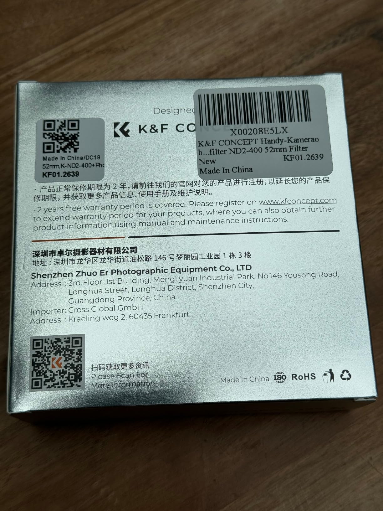 K&F Concept Universal biedt een lensfilter voor mobiele telefoons met een 52mm-schroefdraad. Het is een variabel ND-filter met een sterkte van ND2 tot ND400. De gewenste sterkte kan worden aangepast door het filter te draaien. Het wordt geleverd met een bijbehorende lensclip, een schoonmaakdoekje en een handleiding. De clip wordt eenvoudig op de camera bevestigd en het ND-filter kan er vervolgens op worden geschroefd. In tegenstelling tot de beschrijving die stelt dat het alleen geschikt is voor iPhones, kan ik bevestigen dat het ook compatibel is met andere mobiele telefoons en goed past. Het is handig om de belichtingstijd te verlengen. Als je een camera hebt met een compatibele 52mm-lens, kan het filter daar zelfs mee worden gebruikt.