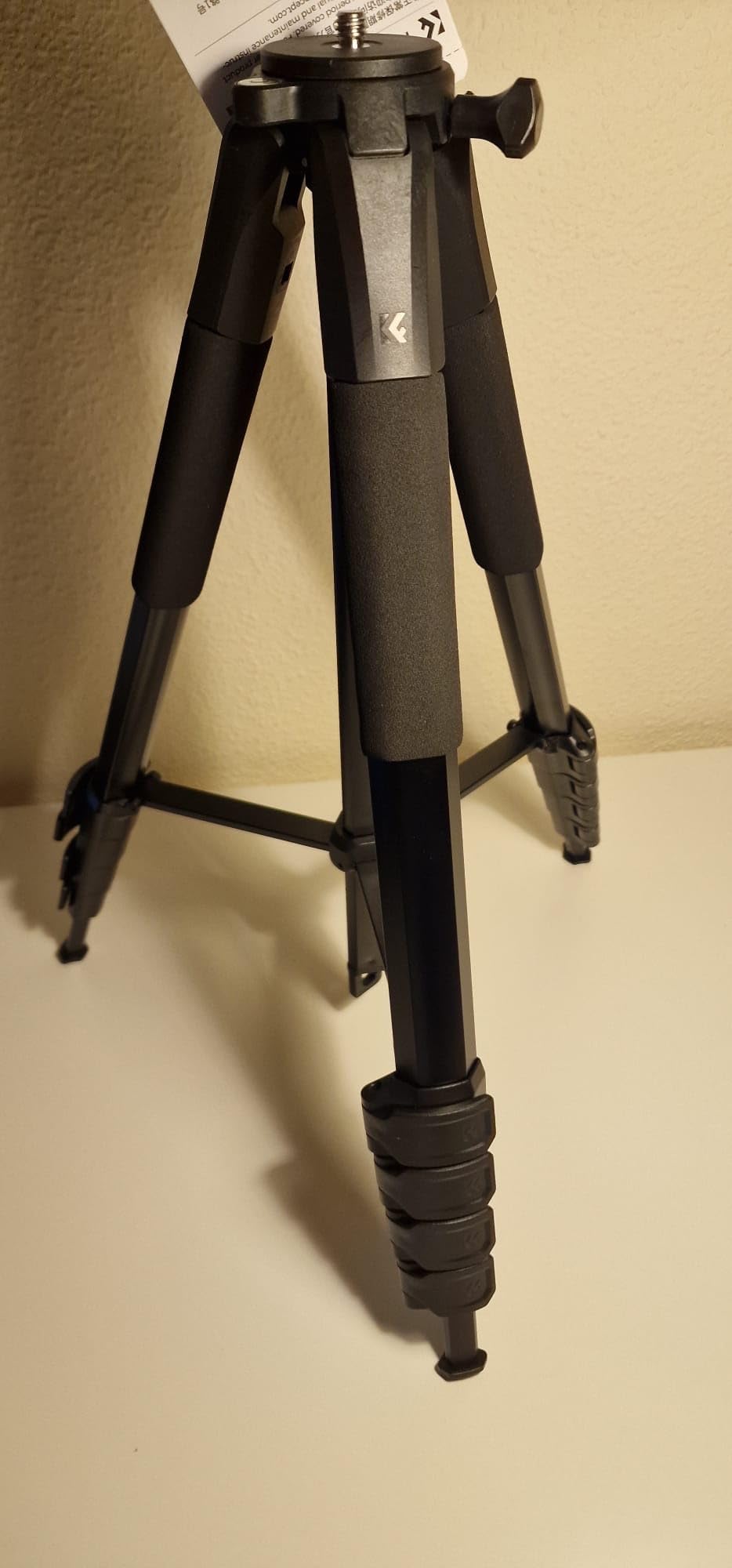 Ik ben echt onder de indruk van de prijs-kwaliteitverhouding van dit statief. Toegegeven, het is niet zo stevig als een Manfrotto statief, maar voor minder dan de helft van de prijs levert dit exemplaar een uitstekende kwaliteit. Het statief kan zeer hoog worden ingesteld, zelfs zonder het middelste buisgedeelte omhoog te schuiven. Ik ben ongeveer 1,73 meter lang en met de poten volledig uitgeschoven staat de camera voor mij te hoog. Dus als je lang bent, kan dit statief de camera op ooghoogte brengen. Het telescopische mechanisme van de poten voelt solide aan en het statief vouwt netjes en compact op. De set wordt geleverd met een degelijke tas en accessoires voor je mobiele telefoon. Ik denk dat ik hier jarenlang plezier van zal hebben. Het enige nadeel is dat de klemmen voor de pootverlenging niet verstelbaar zijn. Ik verwacht deze functie ook niet van een statief in deze prijsklasse, en ik zie ook geen reden om dit in de toekomst te moeten aanpassen.