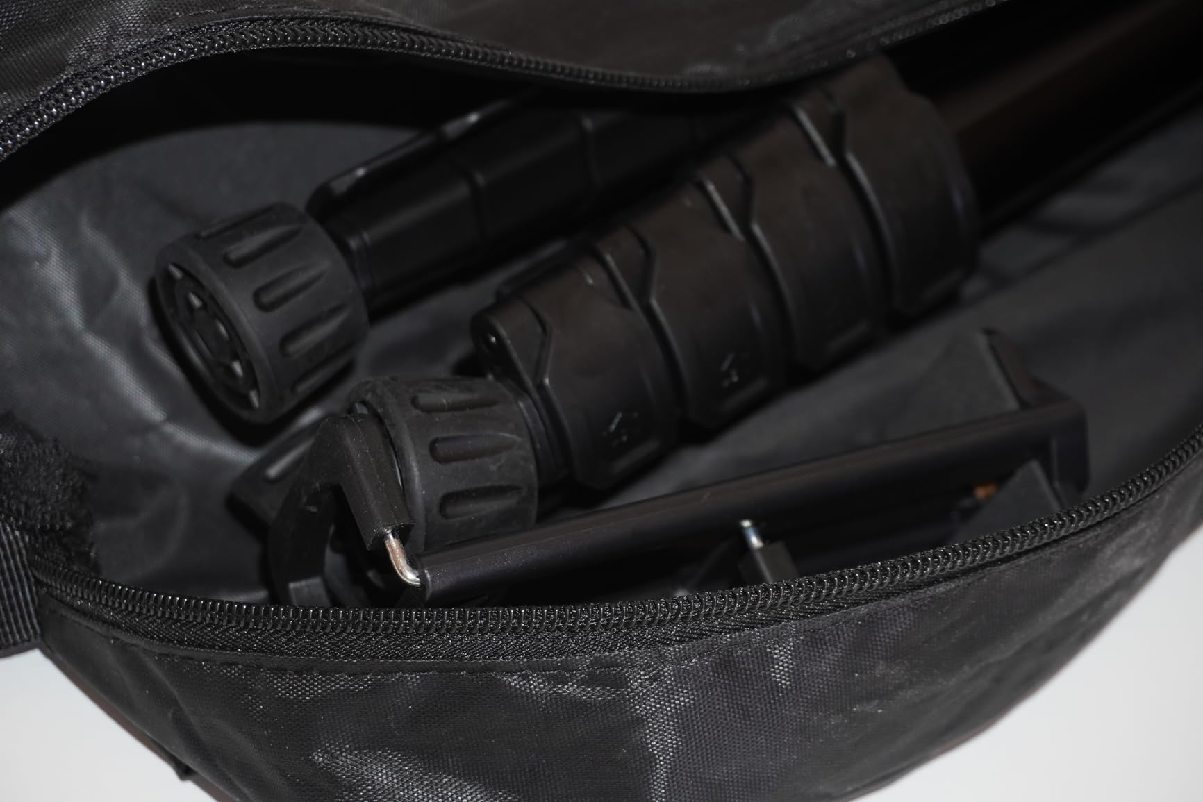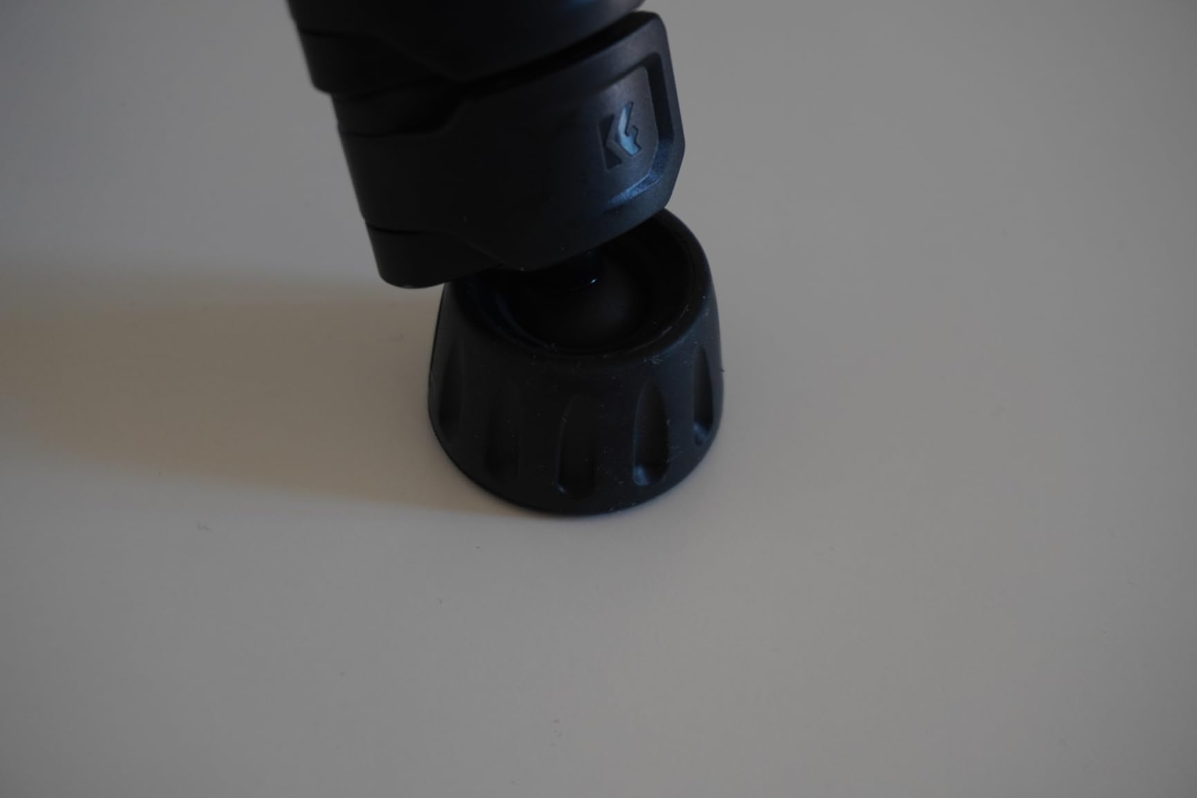 Dit statief is degelijk gemaakt, met een aluminium frame en plastic inzetstukken om de poten te verstevigen. De rubberen voetjes zorgen voor een stevige grip op vrijwel elke ondergrond. De haak aan de middenkolom, waaraan een rugzak bevestigd kan worden, draagt ook bij aan de stabiliteit. Het statief heeft een zeer kleine doorsnede, waardoor het uitstekend draagbaar is. Dit voordeel gaat echter ten koste van de hoogte: vergeleken met een volledig inklapbaar statief is het merkbaar langer, mede door de kop bovenaan.