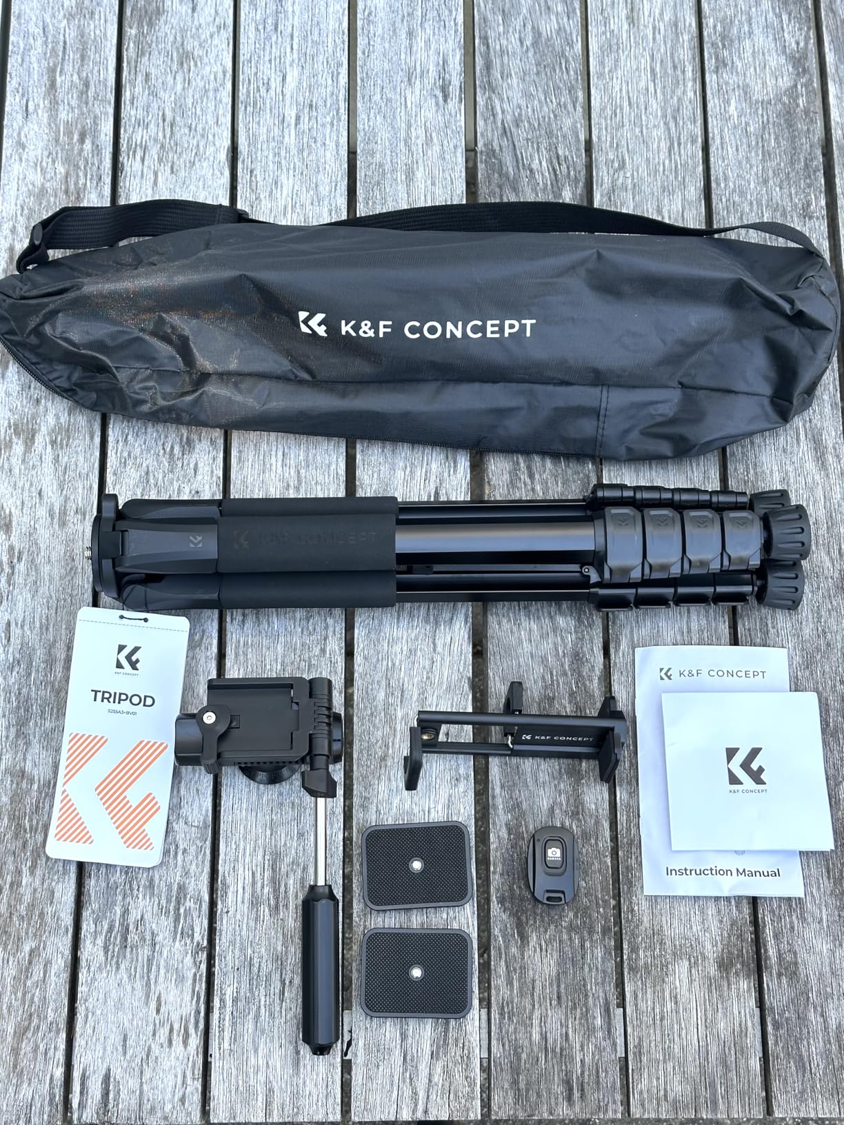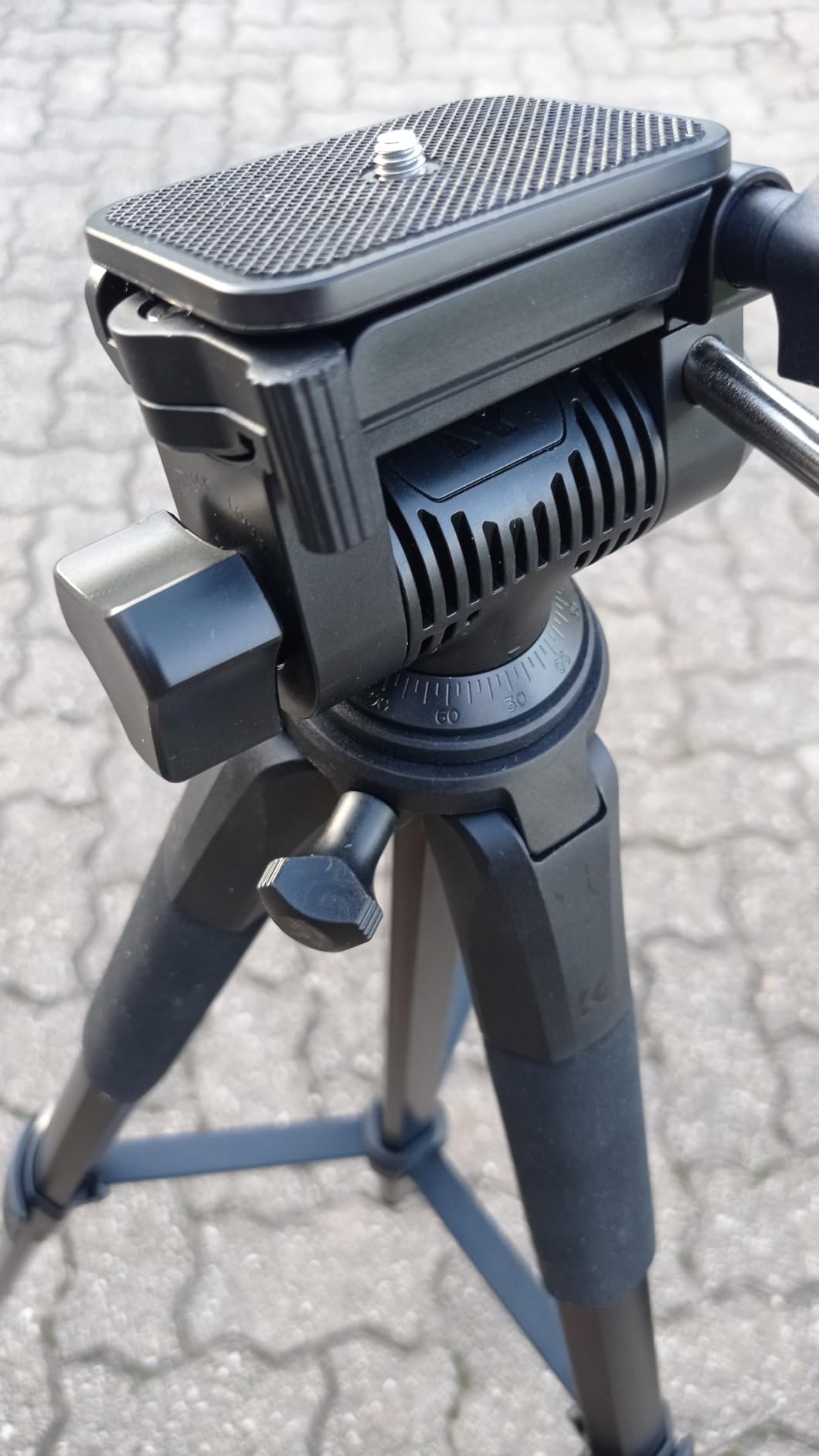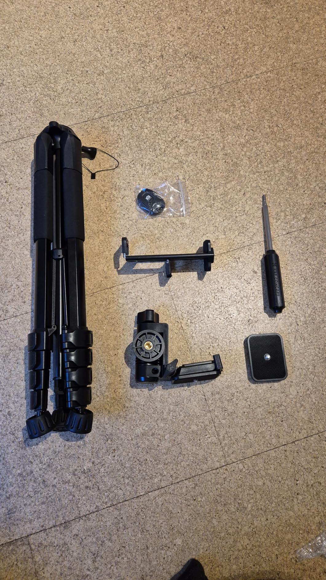 Dit statief heeft me verrast met zijn bouwkwaliteit, materialen en functies. Het wordt geleverd met een mooie draagtas en bevat een kop voor het bevestigen van camera's of telescopen (zoals die van mij), een zeer degelijke telefoonhouder en een Bluetooth-afstandsbediening voor het bedienen van de camera of videocamera. Er worden twee standaard camerabevestigingsplaten meegeleverd. De kop maakt het ook mogelijk om je camera of telefoon in speciale posities te plaatsen, waardoor je bijvoorbeeld gemakkelijk verticale of horizontale video's kunt opnemen. Het plastic is van goede kwaliteit, maar het hoofdframe en de poten zijn nog beter, gemaakt van zwaar, zwart geanodiseerd aluminium, dat zelfs zware camera's of telescopen gemakkelijk kan dragen. Het heeft ook een ingebouwde waterpas om te controleren of het statief waterpas staat en een haak in het midden om bijvoorbeeld een cameratas aan te hangen, wat de algehele stabiliteit verder verhoogt. Met de poten volledig uitgeschoven is het statief net zo hoog als een persoon, maar volledig ingeklapt meet het slechts 50 cm. Het wordt geleverd met drie grote rubberen voetjes voor gladde of hellende oppervlakken, die gemakkelijk te bevestigen en te verwijderen zijn. Gezien de prijs is dit echt een uitstekend en compleet product. Je zult moeilijk een betere vinden. Ik beveel hem van harte aan.