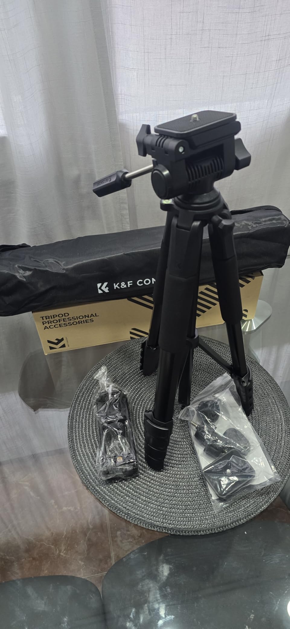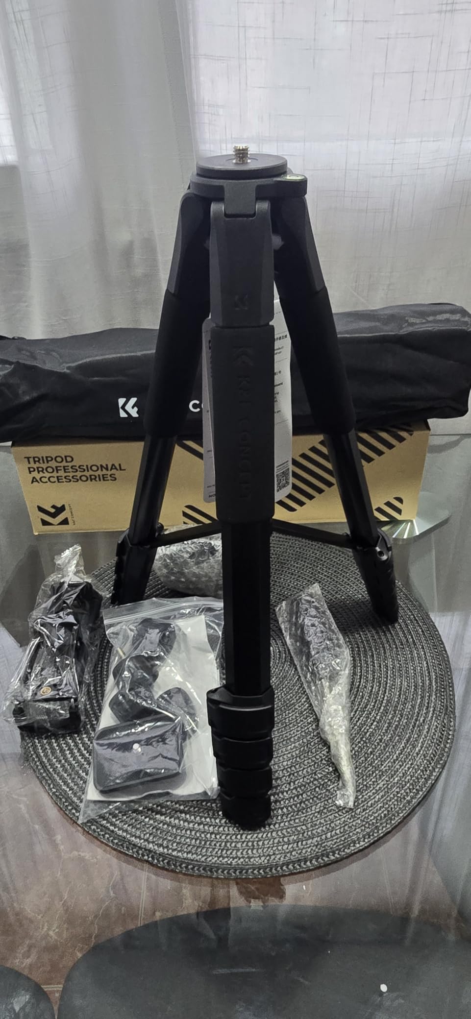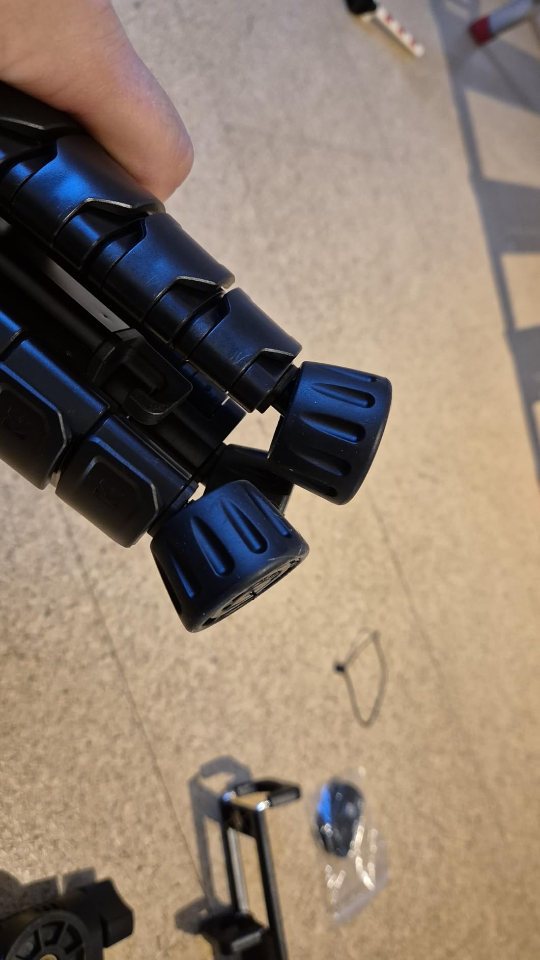 Dit statief heeft me verrast met zijn bouwkwaliteit, materialen en functies. Het wordt geleverd met een mooie draagtas en bevat een kop voor het bevestigen van camera's of telescopen (zoals die van mij), een zeer degelijke telefoonhouder en een Bluetooth-afstandsbediening voor het bedienen van de camera of videocamera. Er worden twee standaard camerabevestigingsplaten meegeleverd. De kop maakt het ook mogelijk om je camera of telefoon in speciale posities te plaatsen, waardoor je bijvoorbeeld gemakkelijk verticale of horizontale video's kunt opnemen. Het plastic is van goede kwaliteit, maar het hoofdframe en de poten zijn nog beter, gemaakt van zwaar, zwart geanodiseerd aluminium, dat zelfs zware camera's of telescopen gemakkelijk kan dragen. Het heeft ook een ingebouwde waterpas om te controleren of het statief waterpas staat en een haak in het midden om bijvoorbeeld een cameratas aan te hangen, wat de algehele stabiliteit verder verhoogt. Met de poten volledig uitgeschoven is het statief net zo hoog als een persoon, maar volledig ingeklapt meet het slechts 50 cm. Het wordt geleverd met drie grote rubberen voetjes voor gladde of hellende oppervlakken, die gemakkelijk te bevestigen en te verwijderen zijn. Gezien de prijs is dit echt een uitstekend en compleet product. Je zult moeilijk een betere vinden. Ik beveel hem van harte aan.