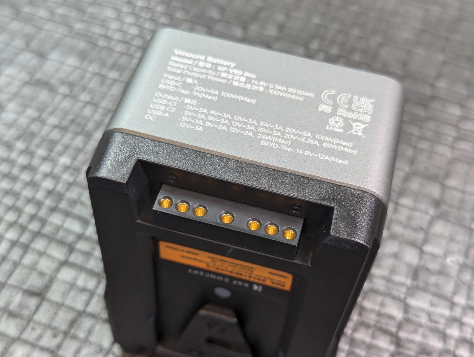 Deze V-Mount-batterij heeft een metalen omhulsel, waardoor hij iets steviger is dan de andere batterijen, maar het maakt de inhoud niet per se veiliger.